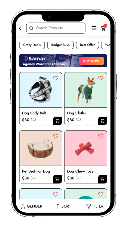 PetPerks is a sleek, user-friendly eCommerce mobile app, tailored for pet lovers and pet care businesses. Whether you're selling pet food, accessories, grooming products, or health essentials, PetPerks provides a beautiful and functional mobile experience for your users.